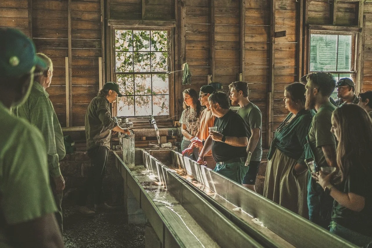 Our ponds and raceways are gravity-fed by a limestone aquifer that runs at 3,000 gallons a minute, eliminating the need to use pumps or electricity. Our hatchery aims to protect and benefit the environment while supporting the conservation of wild trout populations, which are dwindling in America’s streams.