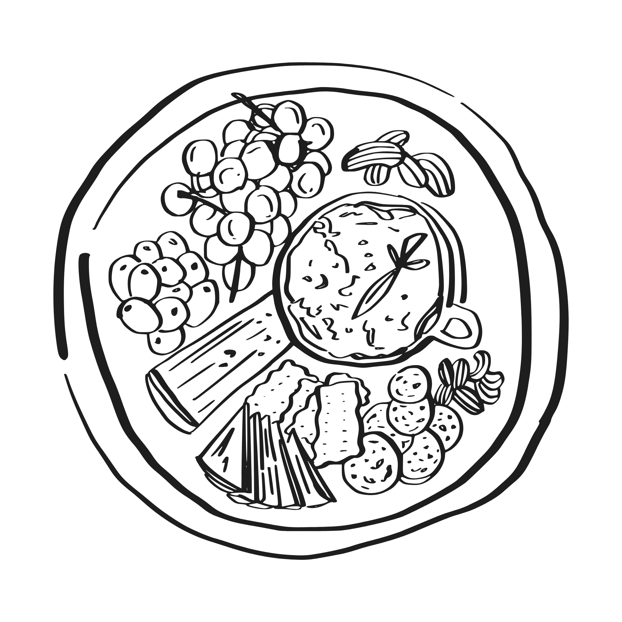 Include fresh, pickled or fermented vegetables, olives, nuts, and fresh fruit